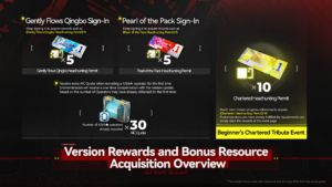 - Eventos de login (7 dias): “Gently Flows Qingbo” e “Pearl of the Pack” garantem Permissões por tempo limitado.