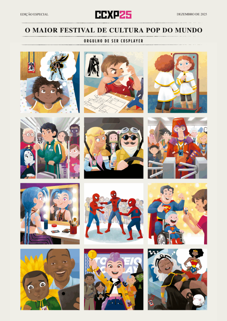 A CCXP25 revela o pôster oficial desta edição com uma homenagem direta aos cosplayers, uma das principais comunidades do festival. A peça, assinada pelo ilustrador e diretor de arte Hiro Kawahara, vencedor da medalha de ouro do 18º Japan International Manga Awards, é o primeiro pôster da CCXP produzido no formato de história em quadrinhos. Ele estará no Artists’ Valley, de 4 a 7 de dezembro, para encontrar fãs, autografar suas HQs e compartilhar suas histórias como ilustrador e quadrinista.
