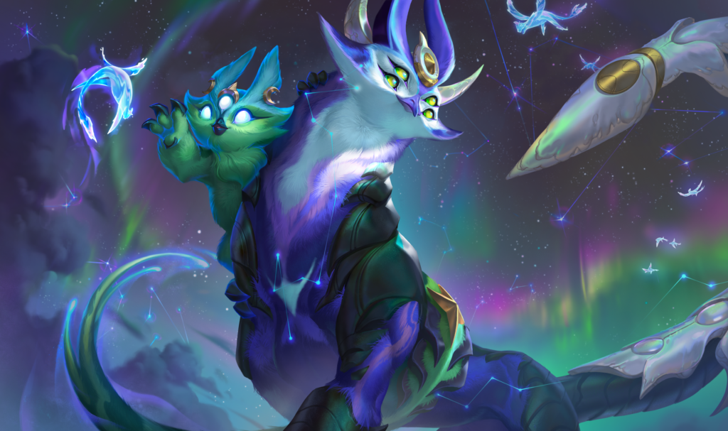 “Space Gods entrelaça os gêneros de ficção científica e fantasia, e marca a colaboração mais próxima da TFT até agora entre nossas equipes de Arte, Design e UX. Adoramos nosso terceiro set de Galaxies, e ficamos empolgados em revisitar esse espaço temático com tudo o que aprendemos ao longo dos anos. Com a mecânica do Reino dos Deuses substituindo o carrossel pela primeira vez na história do TFT, estamos oferecendo aos jogadores a oportunidade de ver nossos Deuses em toda a sua glória. É uma experiência inovadora que combina ilustrações vibrantes com jogabilidade dinâmica.” – Noemi Coute, líder de design de cenários