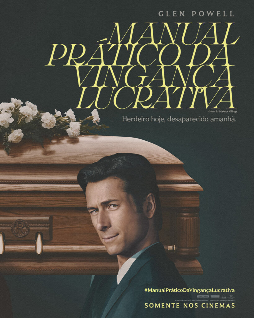 MANUAL PRÁTICO DA VINGANÇA LUCRATIVA (“How to Make a Killing”), longa da A24 estrelado pelo astro Glen Powell (“Assassino Por Acaso”), chega aos cinemas brasileiros em 26 de fevereiro, com distribuição da Diamond Films. Escrito e dirigido por John Patton Ford (“Emily, a Criminosa”), o filme propõe uma reflexão original sobre ambição e poder na sociedade americana, sem economizar na acidez. Para isso, curiosamente o cineasta parte de um filme dos anos 1940 que, como seu sucessor espiritual, é também dono de um tom muito particular: “As Oito Vítimas”, de Robert Hamer.