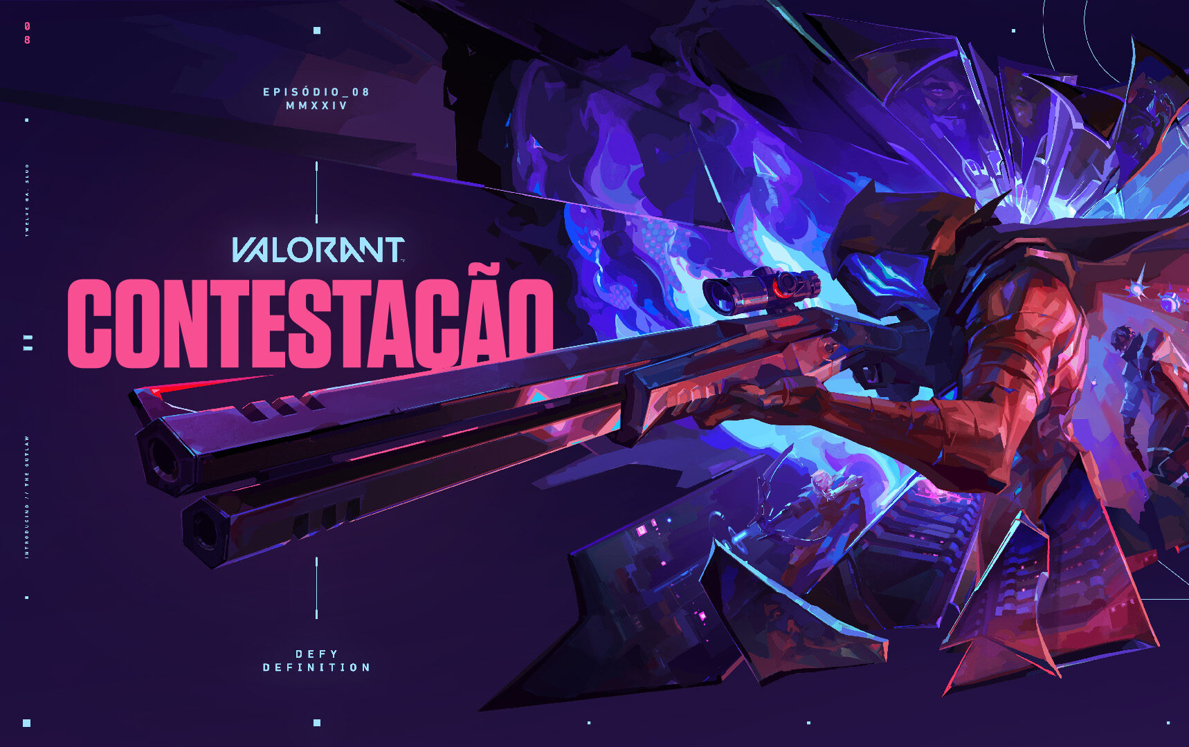 A Riot Games e o VALORANT revelaram hoje a OUTLAW, uma nova arma que será lançada com o Episódio 8, Ato I. O fuzil de precisão de alto impacto e dois canos, primeira nova arma adicionada ao arsenal desde o lançamento, foi projetado para jogadas decisivas. Para comemorar o lançamento, os jogadores podem começar sua jornada com a OUTLAW com o PACOTE INICIAL: OUTLAW, que faz uma viagem no tempo até 2020, com algumas das primeiras linhas de skins do VALORANT (Prismática//Repaginada e Ego), além de três acessórios.